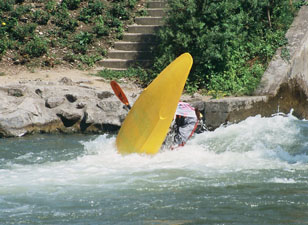 Naturerfahrungsmöglichkeiten am und im Wasser. Auf einer dirket am Campingplatz liegenden Wildwasserslalomstrecke steigern