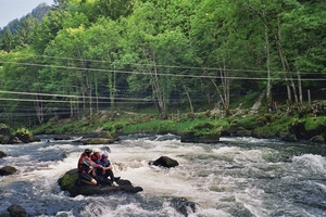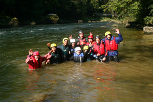 Aktionen mit dem Floß. Die Kanuwanderstrecke unterhalb von Goumois gilt als einer der Schönsten in der Schweiz. Übernachtet wird auf einem einfachen Naturcampingplatz des Schweizer Kanu-Verbands.